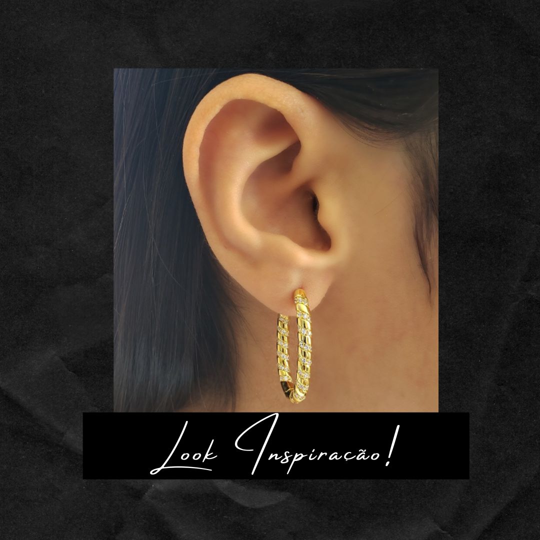Este brinco, é em banho Ouro 18k., com lindos detalhes de pedras zircônias de brilhantes microcravejadas.