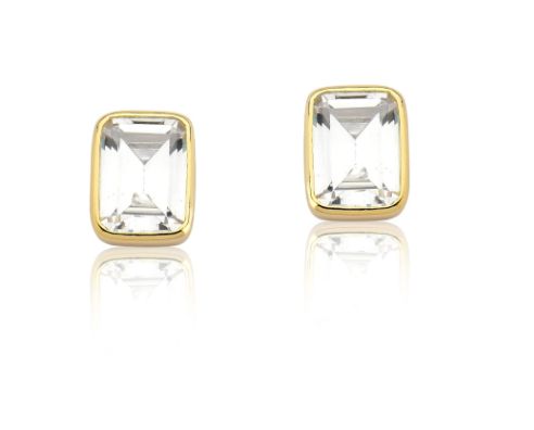 Este Brinco, é estilo ponto de luz, com a pedra em formato retangular.